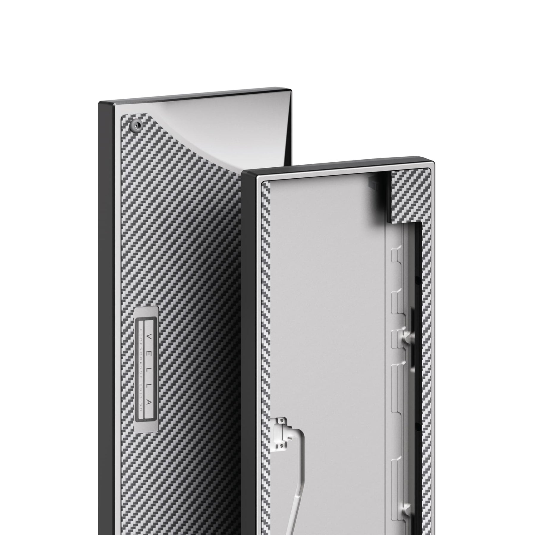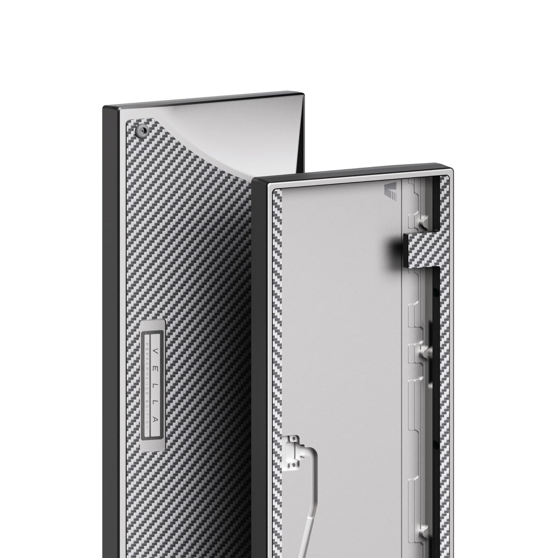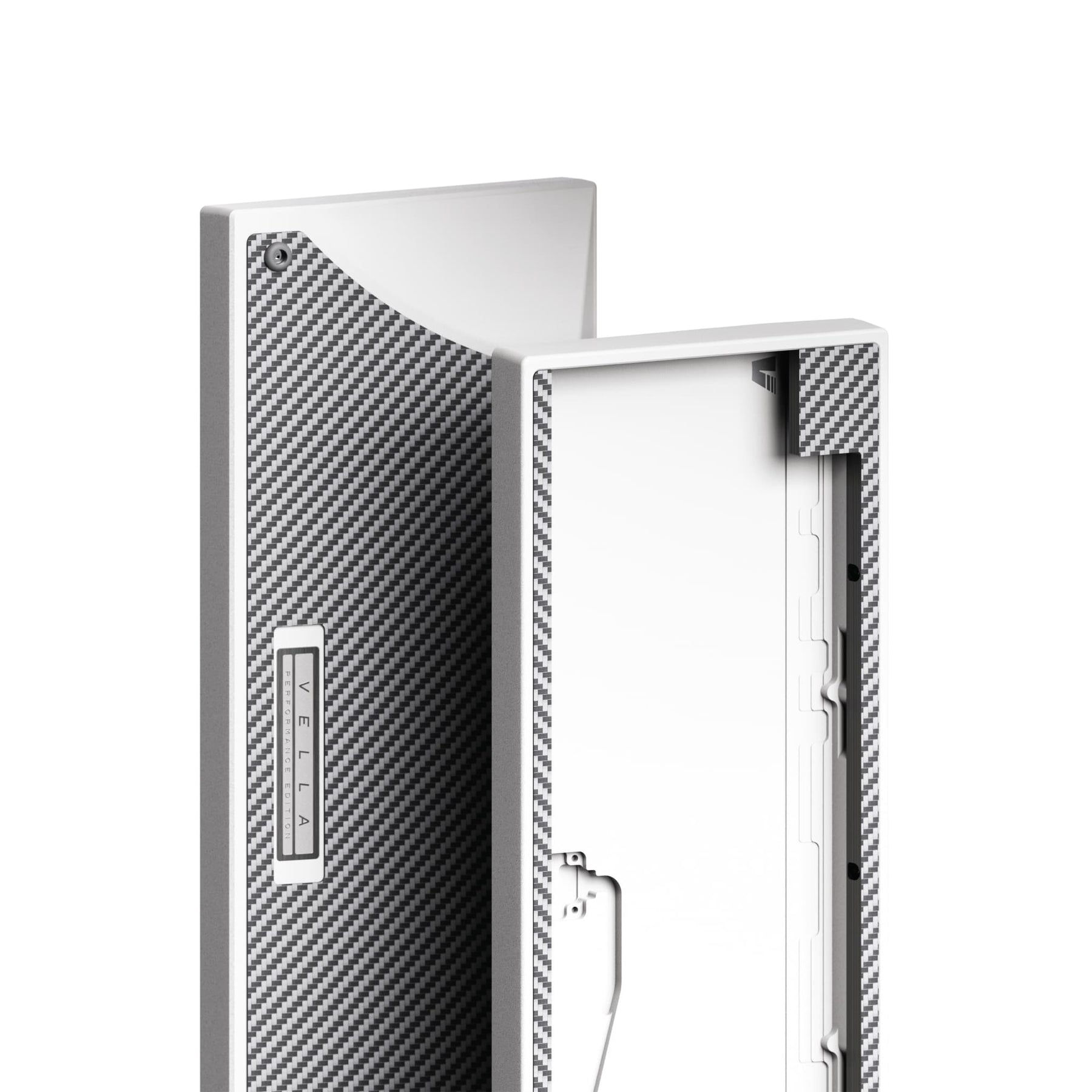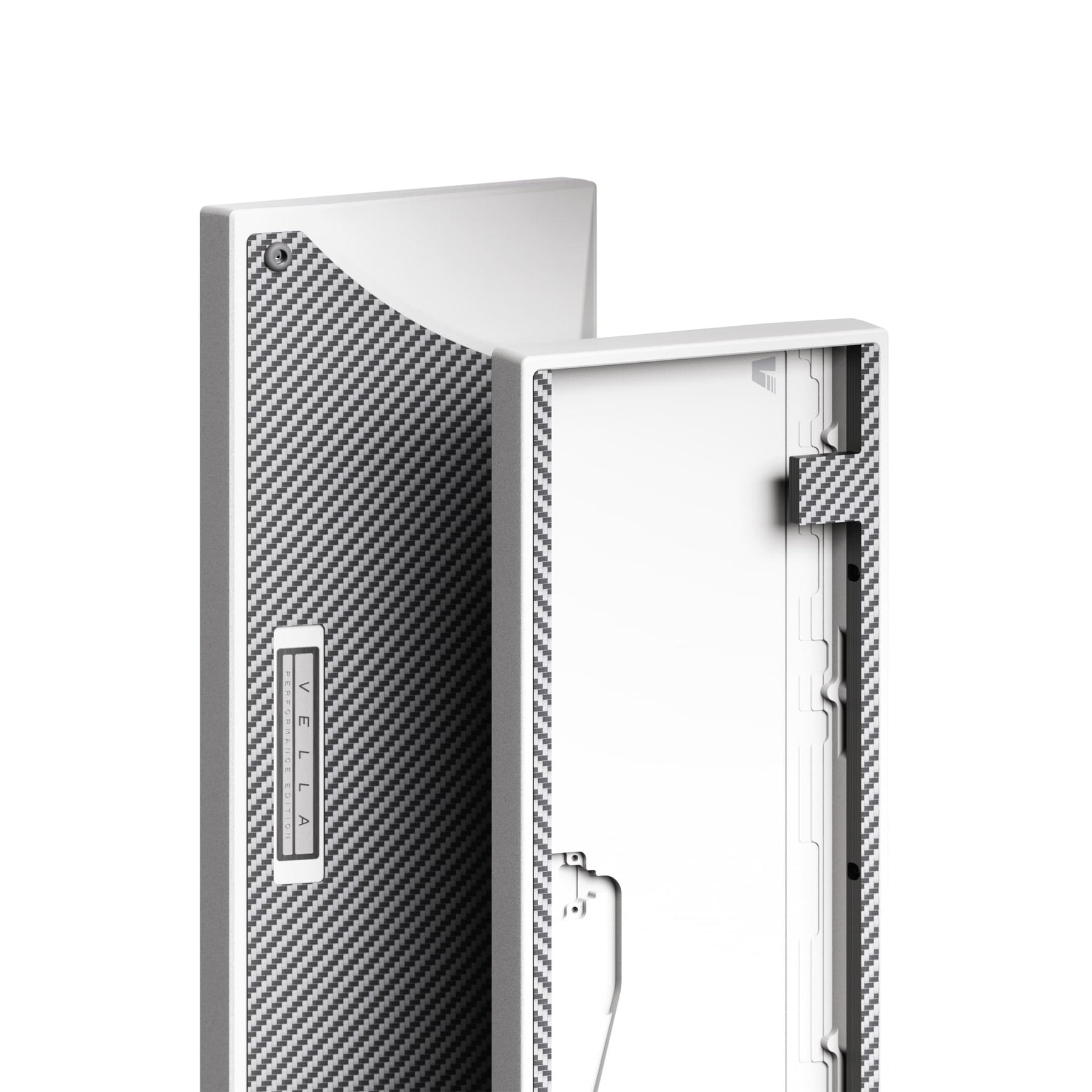 Most HE compatible cases on the market are unibody designs limited to WK layouts and use tray mounting, which often leads to a stiff typing experience and less refined acoustics. Vella was designed to address these shortcomings. While it keeps the unibody form for cost efficiency, it features removable blockers that let users choose freely between WK, WKL, or HHKB layouts. It also incorporates carbon fiber accents and a clean, well balanced case design to bring together both aesthetics and performance.